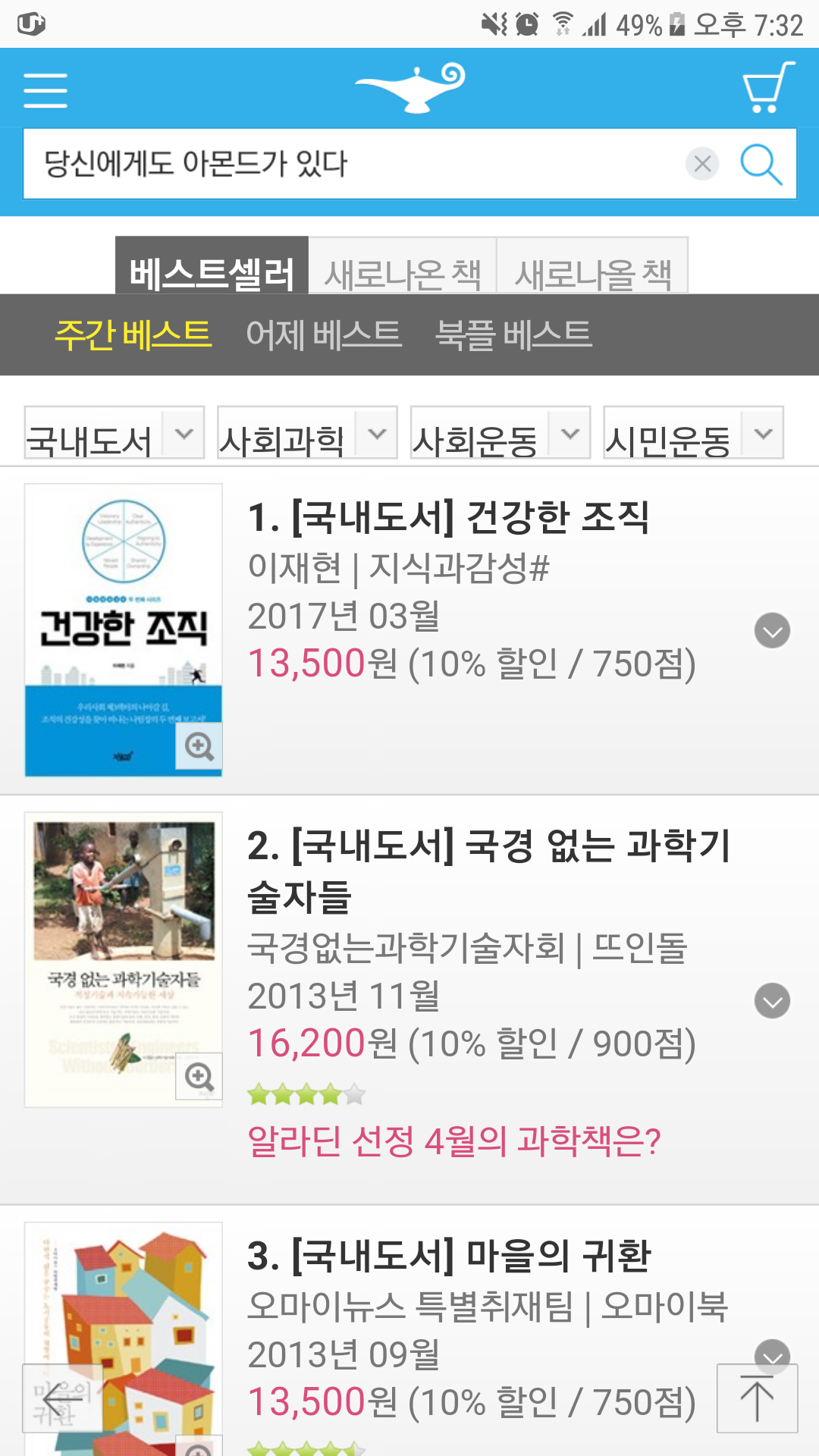 예스24 사회단체/NGO Top20 25주(최고 8위), 2020 알라딘 사회운동 분야 3위